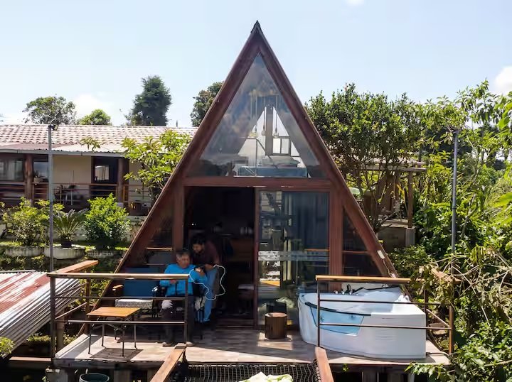 Tomar café viendo la naturaleza o bñarte en el jacuzzi observando las aves en una de las sensaciones que te brindan esta cabaña